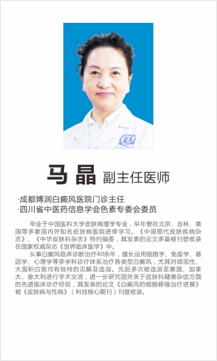 毕业于中国医科大学皮肤病理学专业,早年曾在北京、吉林、美国等多家国内外知名皮肤病医院进修学习。《中国现代皮肤疾病杂志》、《中华皮肤科杂志》特约编委。从事白癜风临床诊断治疗40余年,擅长运用细胞学、免疫学、基因学、心理学等多学科诊疗体系治疗各类型白癜风,尤其对顽固性、大面积白斑均有独特的见解及造诣。先后多次被选派至美国、加拿大、意大利进行学术交流,进一步研究国外关于皮肤科疑难杂症方面的先进临床诊疗经验,其发表的论文《白癜风的细胞移植治疗进展》被《皮肤病与性病》(科技核心期刊)刊登收录。